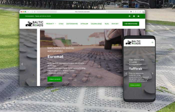 Dla naszego klienta, firmy Baltic Roads, lidera w dziedzinie wynajmu i montażu dróg tymczasowych oraz mat ochronnych, zrealizowaliśmy nowoczesną i w pełni responsywną stronę internetową. Celem projektu było stworzenie profesjonalnej wizytówki online, która w przejrzysty sposób zaprezentuje ofertę firmy, a jednocześnie zapewni intuicyjną obsługę użytkownikom na każdym urządzeniu.